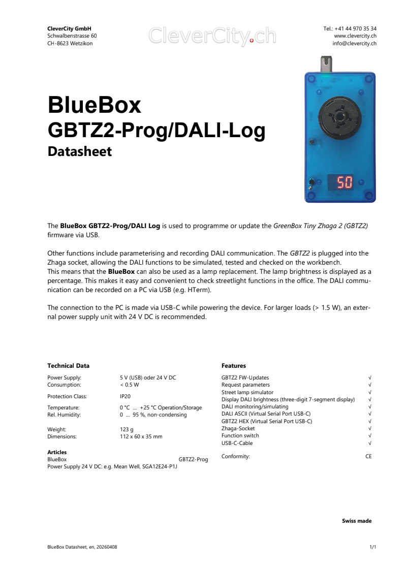 BlueBoxGBTZ2-Prog/DALI-Log EN Datasheet
