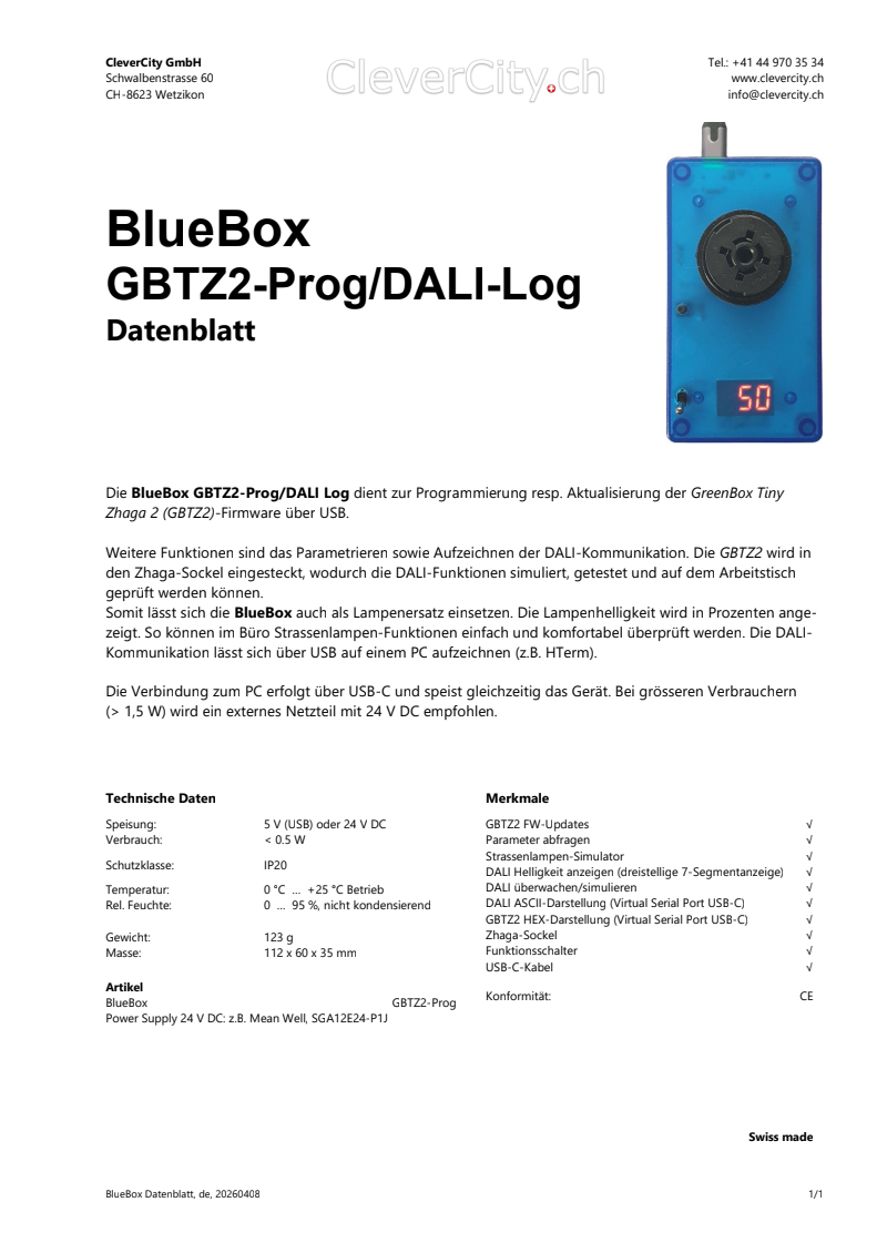 BlueBoxGBTZ2-Prog/DALI-Log Datenblatt